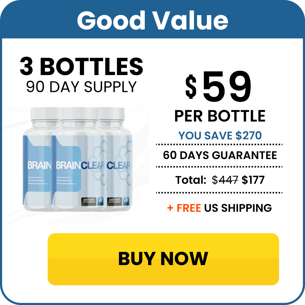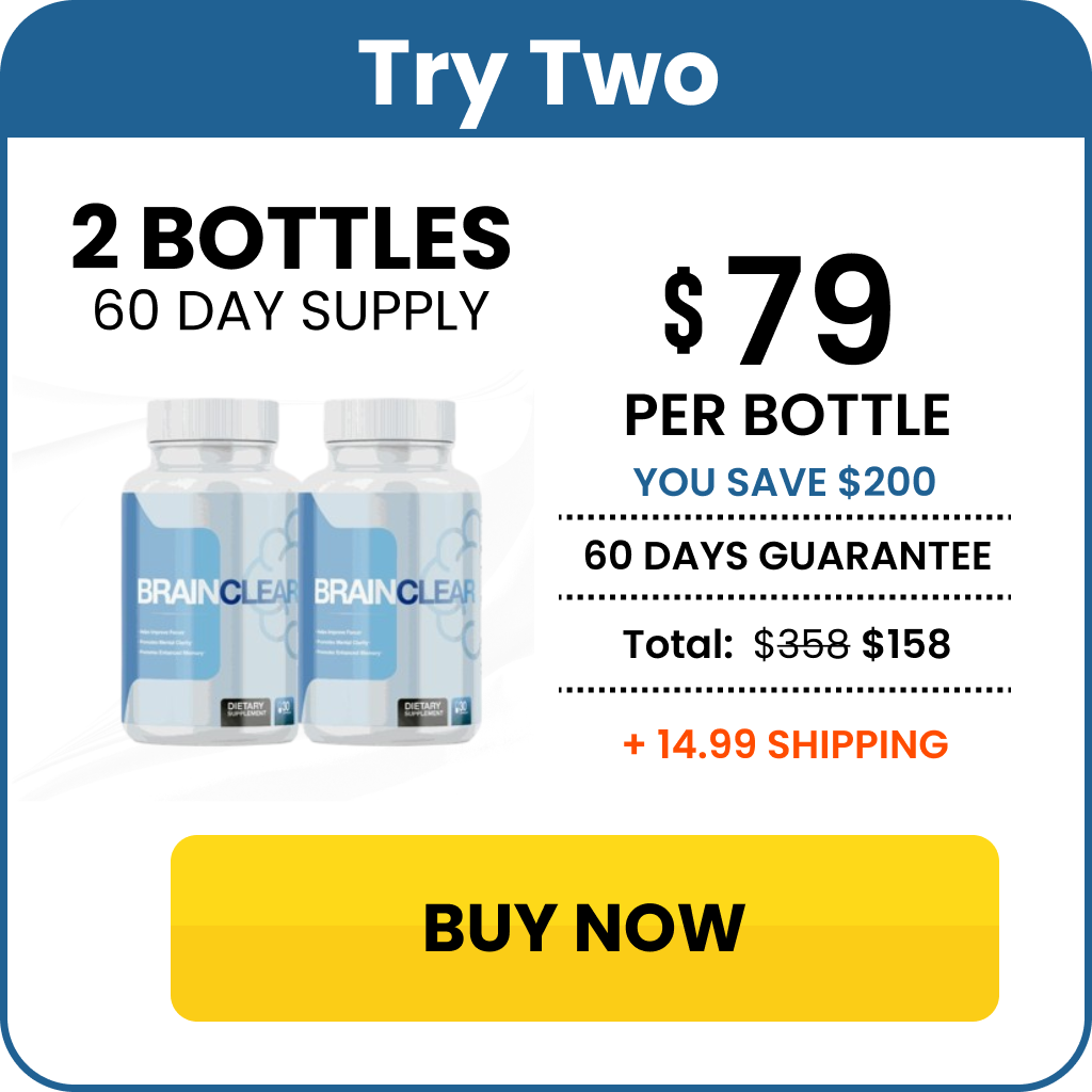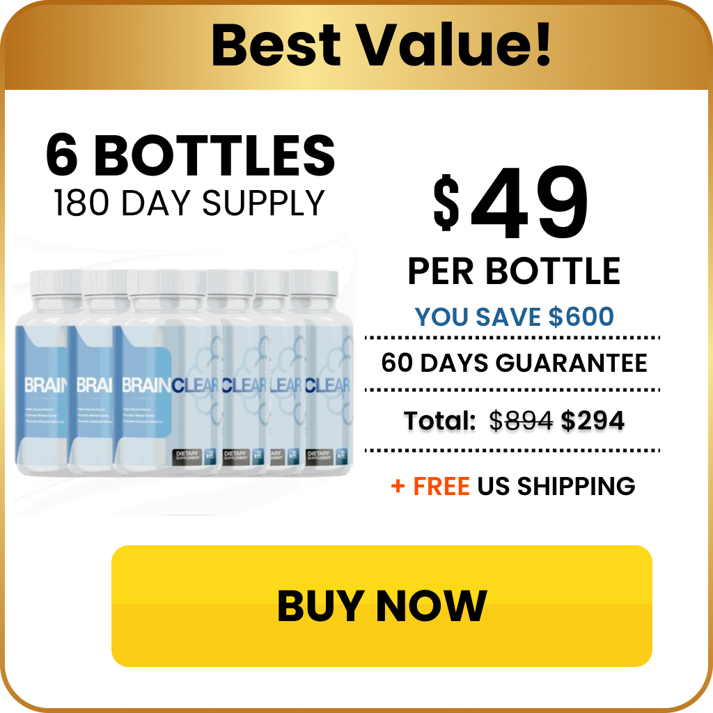 In our studies, the best cognitive improvements were achieved when BrainClear was taken daily for 6 months, helping to strengthen memory, boost focus, and support long-term brain health. That’s why we highly recommend taking advantage of our 6-bottle discounted package — it offers the best value, includes free U.S. shipping, and comes with 2 exclusive bonus gifts.